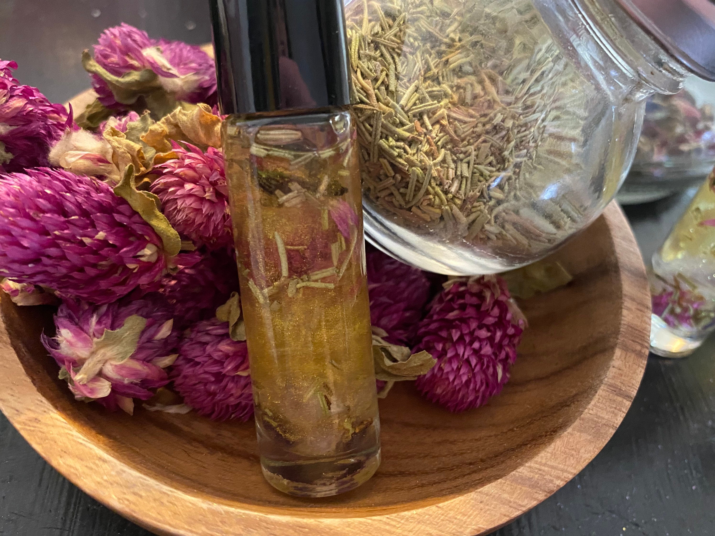 Rose will cleanse your body and energies. Rosemary will purify your natural vibrations. Amaranth for healing the heart and mind. It is the flower of immortality, bridging the gap between the living and the afterworld.