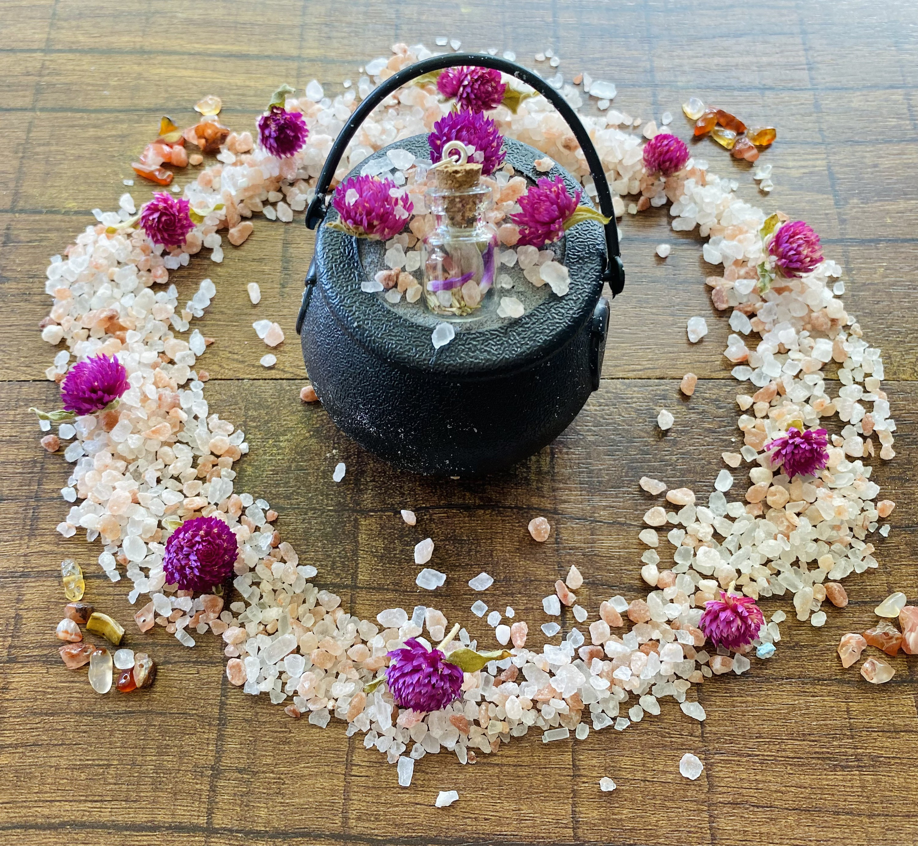 🌿 How to Use: ✨ Fill your tub with warm water. ✨ Place your cauldron bath potion in the water and let it fizz, releasing herbal magick and color. ✨ While you soak, visualize negativity leaving your body and dissolving into the water. ✨ After your bath, keep your protection bottle charm near you — on your nightstand, in your bag, or worn on a chain to continue shielding your energy.