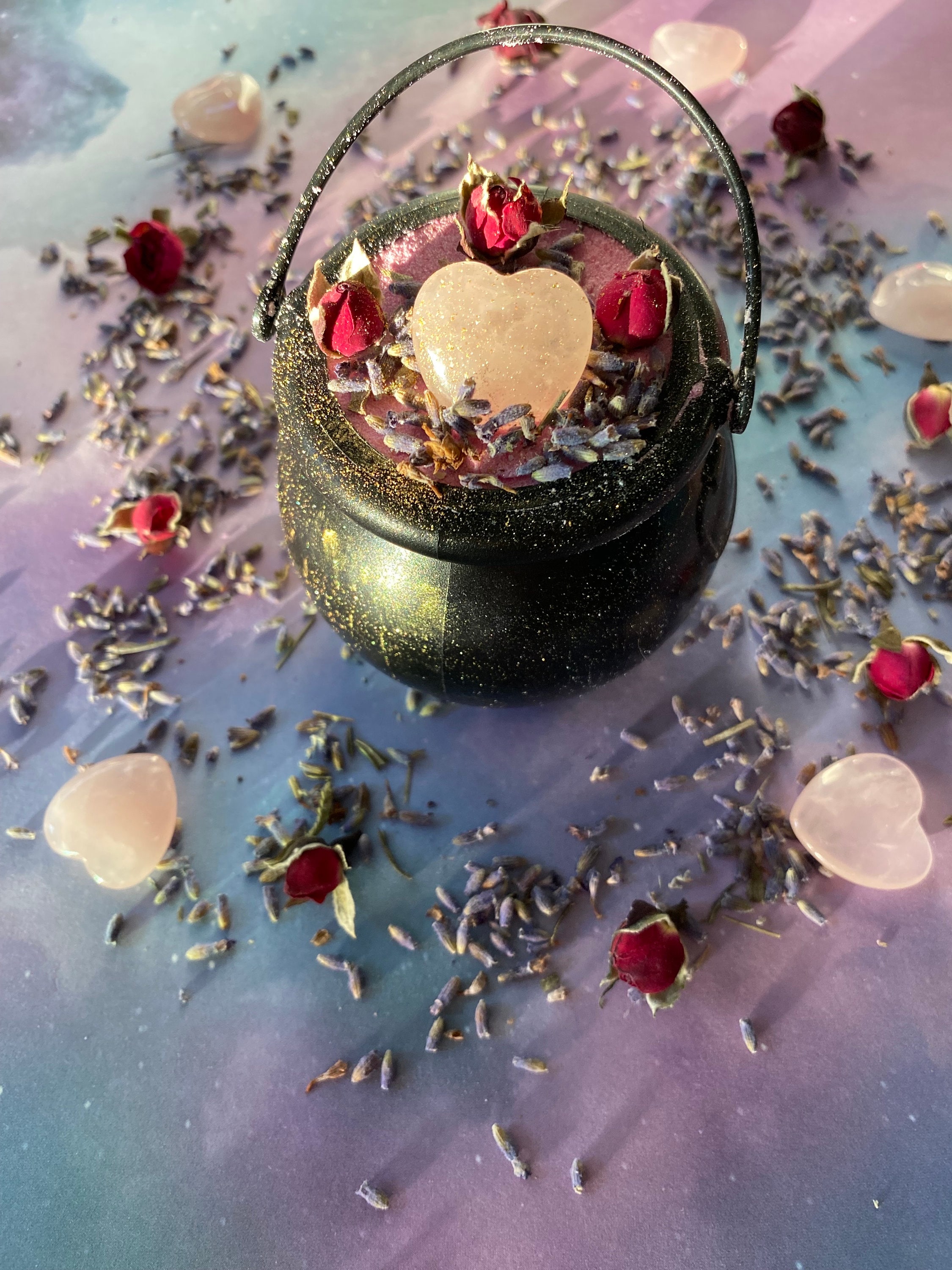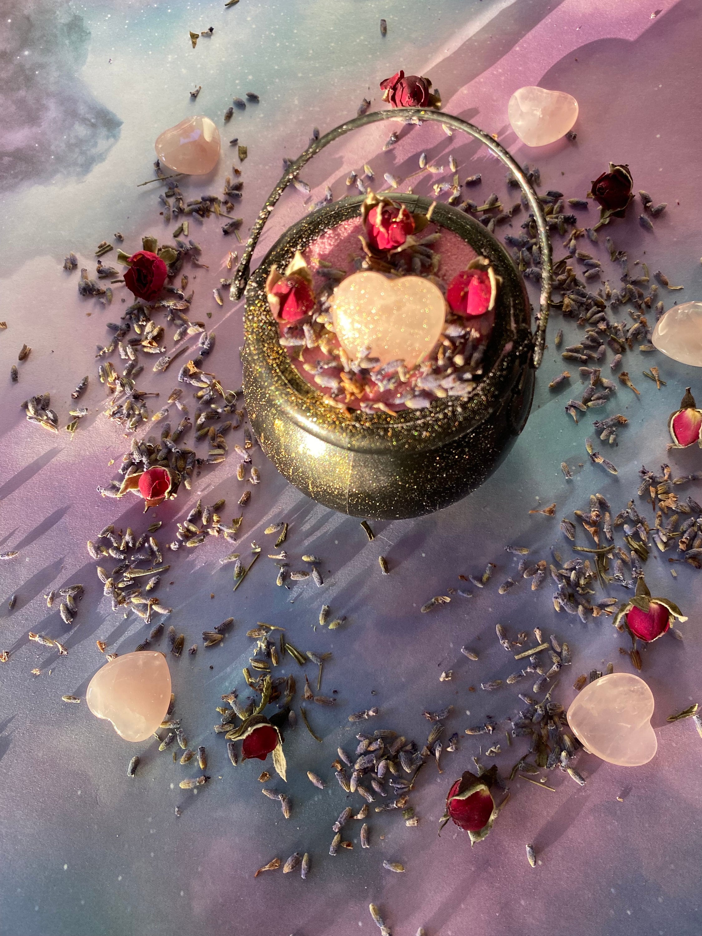 Winning Love by Daylight is a signature cauldron bath potion designed to help navigate the world in your own way to find true love 🩷 . . Made with: ✨Rose to promote everlasting, love and friendship ✨Lavender to represent Grace and calmness in the face of any opposition ✨ Rose Quartz Heart, to only attract those who have good intentions, who will stand by your side throughout your journey . Smells like: Black Current/Rose/Berries . .