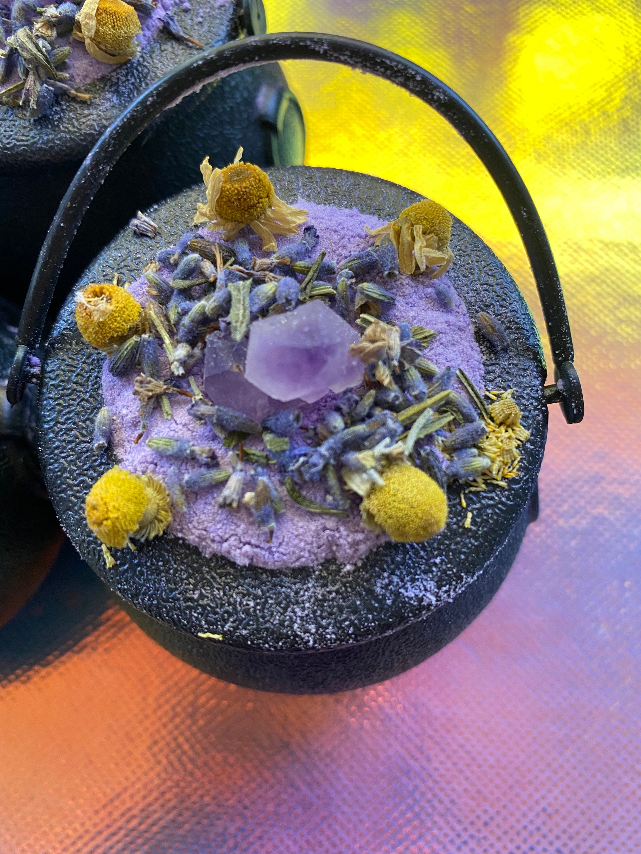 Each bath bombs comes with an Amethyst crystal, for imagination, intuition, and a refined thinking process.